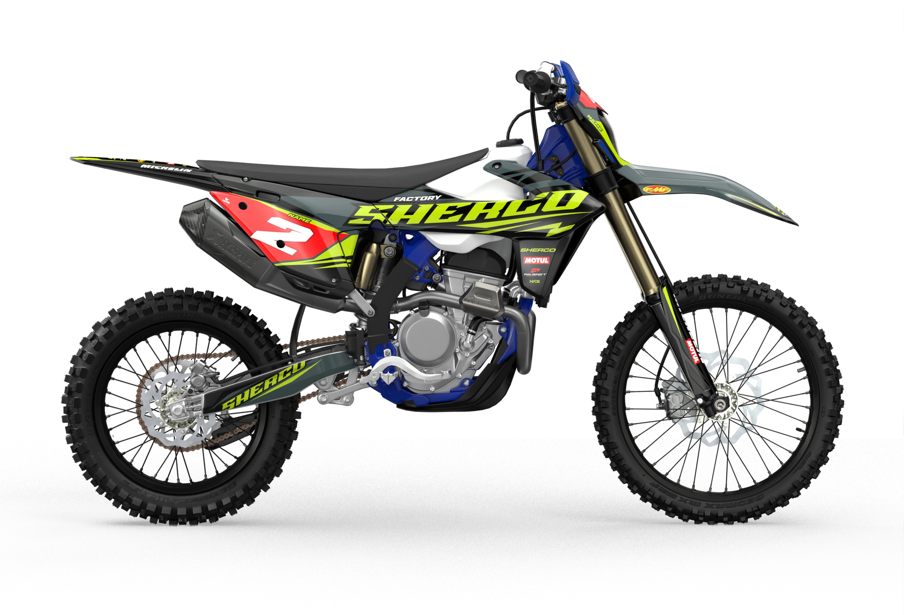 Sherco SE enduro Factory dirt bike graphics in blue, grey and yellow colors Blue#color_blue